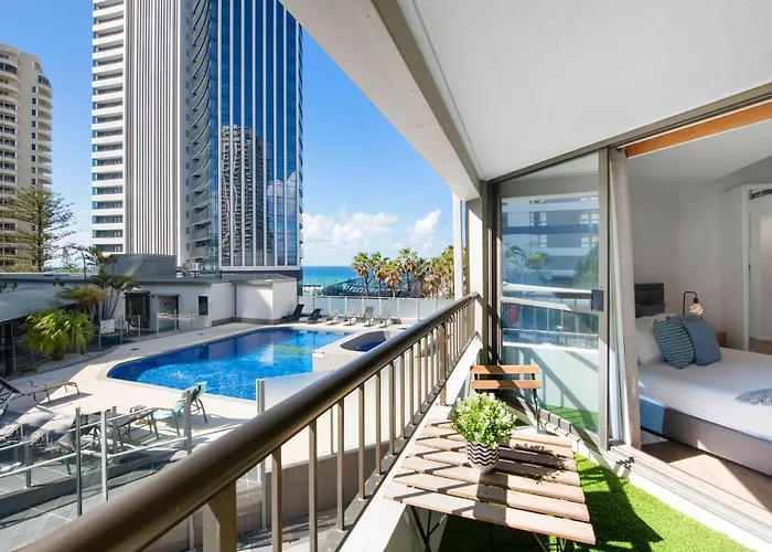 La résidence est situé dans le voisinage de "Coloane" à Gold Coast, à seulement 200 mètres du centre commercial Cavill. Le Centre de conventions et parc des expositions de Gold Coast se trouve à 3 km de la propriété.